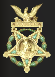 名誉勲章(陸軍) | 米軍の軍事勲章において最高位の勲章です。 | 通称メダルオブオナー。 陸海空それぞれでデザインが異なる(海兵と沿岸警備隊は海軍のものを使用)。 「戦闘においてその義務を超えた勇敢な行為をし、若しくは自己犠牲を示したアメリカ軍人」に対し、「アメリカ議会」の名において代表者である大統領の手で授与される。 第二次世界大戦における受章者数は464名であるが、戦争当時ではなく後から繰り上がったり追加で発行された物も多い。 |